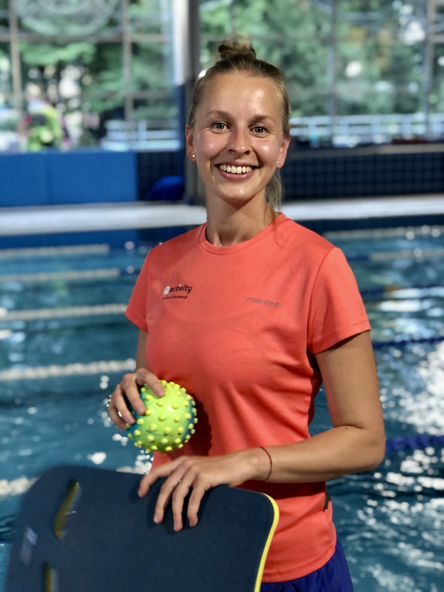 Trenerka pływania II klasy, absolwentka kursu koncepcji Hallwick. Od najmłodszych lat związana ze sportem. Od przeszło 10 lat prowadzi zajęcia z dziećmi i dorosłymi doskonaląc kolejnych zawodników. W przeszłości członkini kadry narodowej w LA, medalistka Mistrzostw Polski w 7-boju. Trenerka personalna, instruktorka LA i gimnastyki korekcyjnej. W swojej pracy stawia na dokładność i systematyczność. Jej poczucie humoru i sportowa energia potrafią zmotywować każdego.